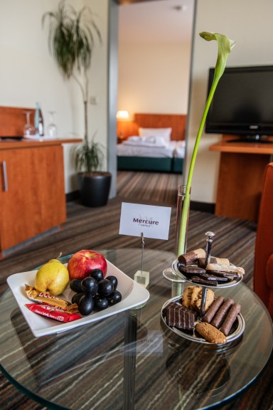Das Mercure Hotel in Offenburg am Messeplatz ist in nur 5 Fahrminuten von der Autobahn A5 Basel-Heidelberg erreichbar. Dank der verkehrsgünstigen Lage und der Nähe zum Offenburger Zentrum, ist unser Hotel der ideale Ausgangspunkt für Touristen und Geschäftsreisende. Modernste Tagungs- und Banketträume, in Größen von 32 - 300qm, für bis zu 300 Personen, machen unser Haus zur ersten Adresse für Ihre Veranstaltung. Für Freude an gutem Essen ist ebenfalls gesorgt. Das Restaurant "Hofkammer" empfängt Sie im traditionellen, Schwarzwaldambiente und in der romantischen Weinstube "Schenke" lernen Sie badische Lebensart zu schätzen. Zum Wohlfühlen laden Sie unsere 132 klimatisierten Zimmer und Suiten ein. Nichtraucherzimmer und Parkplätze (kostenpflichtig) stehen zu Ihrer Verfügung. Eine erholsame Zeit genießen Sie im Panoramaschwimmbad mit Sauna, der Infrarotkabine oder unsererm Fitnessraum. Hotel-Extras Alle Zimmer sind klimatisiert und verfügen über Flat-Screen, Telefon sowie Wasserkocher. Direkt am Messegelände nur wenige Minuten fußläufig ins Stadtzentrum, 2km zur Auffahrt der A5 Zentrale Lage zwischen Strasbourg, Freiburg, Schwarzwald, Baden-Baden, Colmar und Europa Park Kostenfreies WLAN im kompletten Hotel und kostenfreien Internet-Terminals in der Lobby